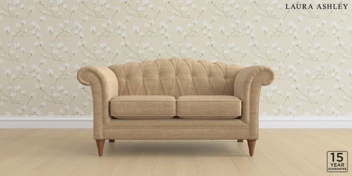 6.12.1 Buy Gloucester Button Back by Laura Ashley 2 Seater Small Sofa Edwin Chenille Gold Natural Low Turned - Teak from the Next UK online shop Click here to use our accessible website