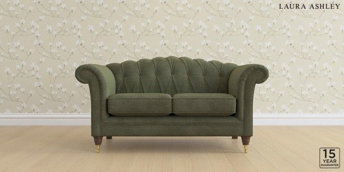 6.12.13 Buy Gloucester Button Back by Laura Ashley 2 Seater Small Sofa Edwin Chenille Hedgerow Green Low Brass Castor - Chestnut from the Next UK online shop Click here to use our accessible website