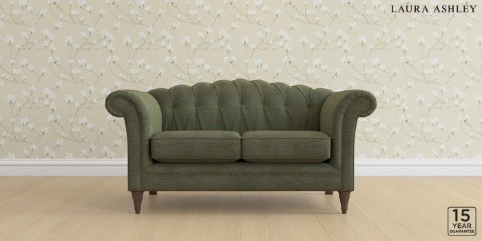 6.12.1 Buy Gloucester Button Back by Laura Ashley 2 Seater Small Sofa Edwin Chenille Hedgerow Green Low Turned - Chestnut from the Next UK online shop Click here to use our accessible website