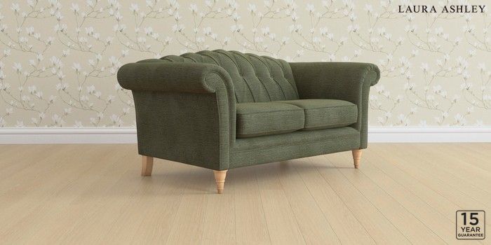 6.12.13 Buy Gloucester Button Back by Laura Ashley 2 Seater Small Sofa Edwin Chenille Hedgerow Green Low Turned - Light Oak from the Next UK online shop Click here to use our accessible website