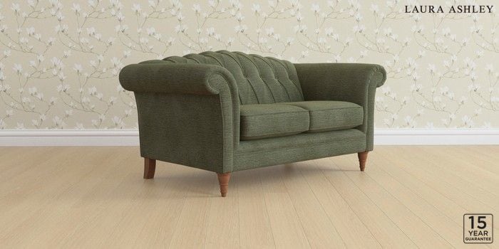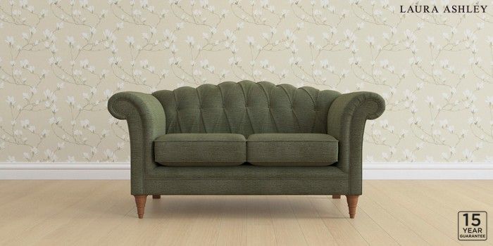 6.12.13 Buy Gloucester Button Back by Laura Ashley 2 Seater Small Sofa Edwin Chenille Hedgerow Green Low Turned - Teak from the Next UK online shop Click here to use our accessible website