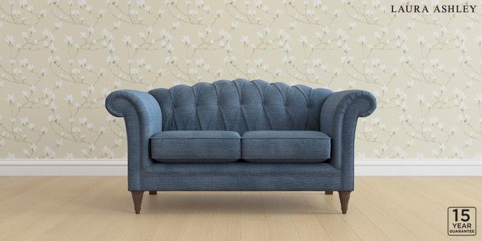 6.12.13 Buy Gloucester Button Back by Laura Ashley 2 Seater Small Sofa Edwin Chenille Seaspray Blue Low Turned - Chestnut from the Next UK online shop Click here to use our accessible website