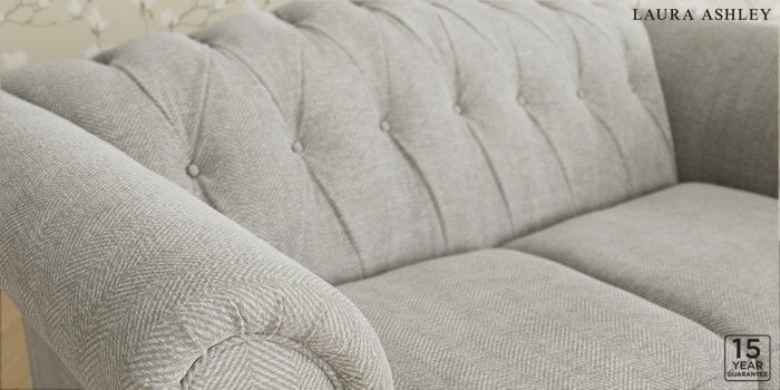 6.12.1 Buy Gloucester Button Back by Laura Ashley 2 Seater Small Sofa Edwin Chenille Silver Grey Low Brass Castor - Black from the Next UK online shop Click here to use our accessible website