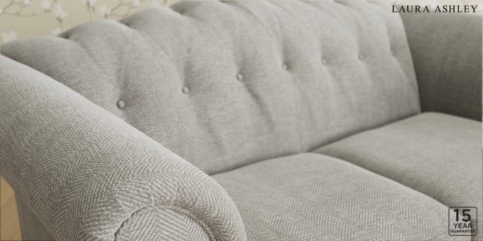 6.12.1 Buy Gloucester Button Back by Laura Ashley 2 Seater Small Sofa Edwin Chenille Silver Grey Low Brass Castor - Chestnut from the Next UK online shop Click here to use our accessible website