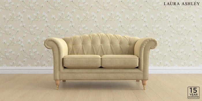 6.12.13 Buy Gloucester Button Back by Laura Ashley 2 Seater Small Sofa Edwin Chenille Truffle Natural Low Brass Castor - Light Oak from the Next UK online shop Click here to use our accessible website