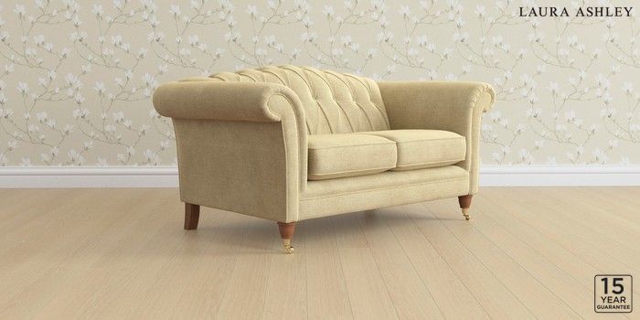 6.12.13 Buy Gloucester Button Back by Laura Ashley 2 Seater Small Sofa Edwin Chenille Truffle Natural Low Brass Castor - Teak from the Next UK online shop Click here to use our accessible website
