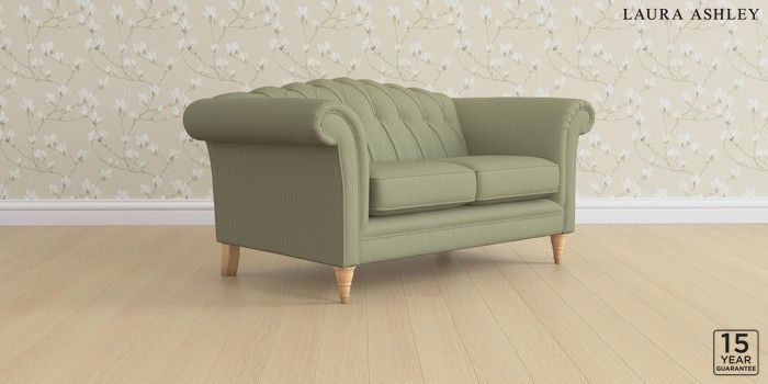 6.12.1 Buy Gloucester Button Back by Laura Ashley 2 Seater Small Sofa Edwin Herringbone Hedgerow Green Low Turned - Light Oak from the Next UK online shop Click here to use our accessible website