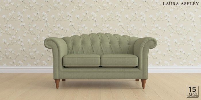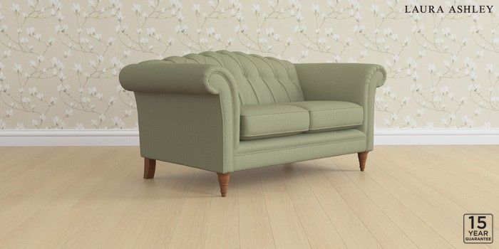 6.12.1 Buy Gloucester Button Back by Laura Ashley 2 Seater Small Sofa Edwin Herringbone Hedgerow Green Low Turned - Teak from the Next UK online shop Click here to use our accessible website
