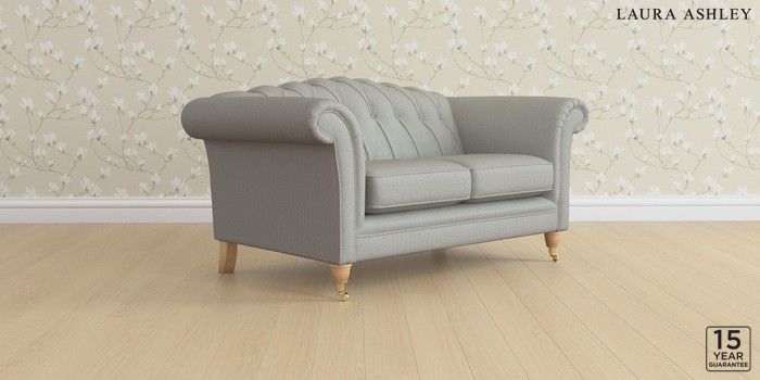 6.12.1 Buy Gloucester Button Back by Laura Ashley 2 Seater Small Sofa Edwin Herringbone Pale Steel Grey Low Brass Castor - Light Oak from the Next UK online shop Click here to use our accessible website