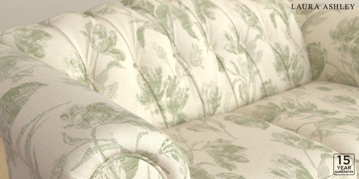 6.12.1 Buy Gloucester Button Back by Laura Ashley 2 Seater Small Sofa Gosford Weave Sage Green Low Brass Castor - Chestnut from the Next UK online shop Click here to use our accessible website