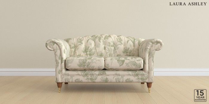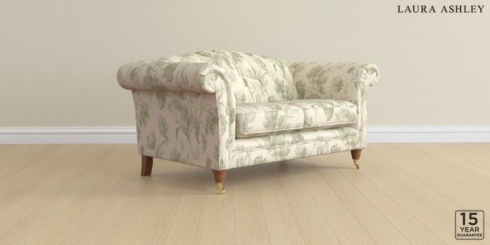 6.12.1 Buy Gloucester Button Back by Laura Ashley 2 Seater Small Sofa Gosford Weave Sage Green Low Brass Castor - Teak from the Next UK online shop Click here to use our accessible website