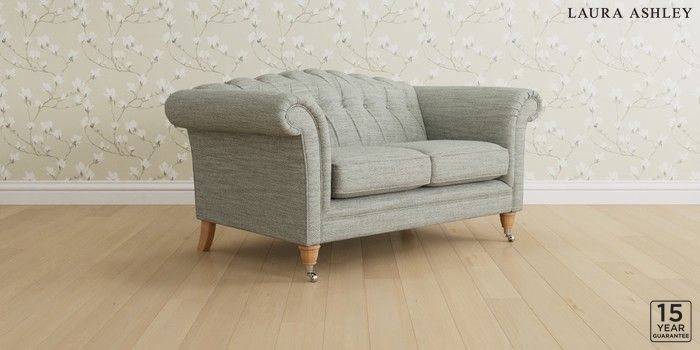 6.12.13 Buy Gloucester Button Back by Laura Ashley 2 Seater Small Sofa Harley Dove Grey Low Chrome Castor - Light Oak from the Next UK online shop Click here to use our accessible website