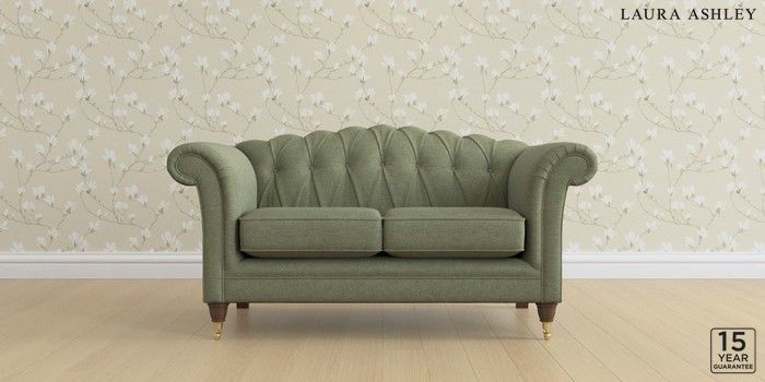 6.12.13 Buy Gloucester Button Back by Laura Ashley 2 Seater Small Sofa Harley Moss Green Low Brass Castor - Chestnut from the Next UK online shop Click here to use our accessible website