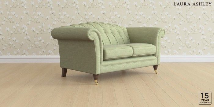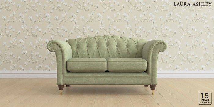 6.12.13 Buy Gloucester Button Back by Laura Ashley 2 Seater Small Sofa Kinsham Hedgerow Green Low Brass Castor - Chestnut from the Next UK online shop Click here to use our accessible website