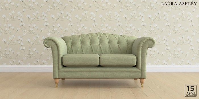 6.12.13 Buy Gloucester Button Back by Laura Ashley 2 Seater Small Sofa Kinsham Hedgerow Green Low Brass Castor - Light Oak from the Next UK online shop Click here to use our accessible website