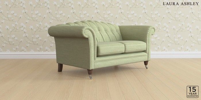 6.12.13 Buy Gloucester Button Back by Laura Ashley 2 Seater Small Sofa Kinsham Hedgerow Green Low Chrome Castor - Chestnut from the Next UK online shop Click here to use our accessible website
