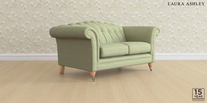6.12.13 Buy Gloucester Button Back by Laura Ashley 2 Seater Small Sofa Kinsham Hedgerow Green Low Chrome Castor - Light Oak from the Next UK online shop Click here to use our accessible website