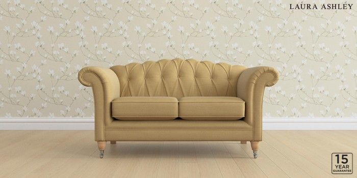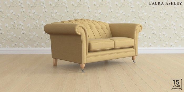 6.12.13 Buy Gloucester Button Back by Laura Ashley 2 Seater Small Sofa Kinsham Ochre Yellow Low Chrome Castor - Light Oak from the Next UK online shop Click here to use our accessible website