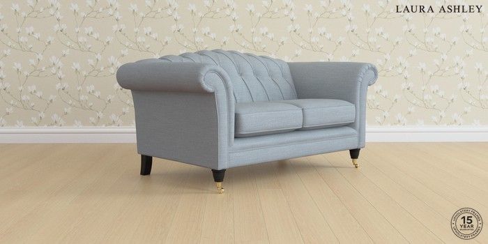 6.12.1 Buy Gloucester Button Back by Laura Ashley 2 Seater Small Sofa Kinsham Seaspray Blue Low Brass Castor - Black from the Next UK online shop Click here to use our accessible website