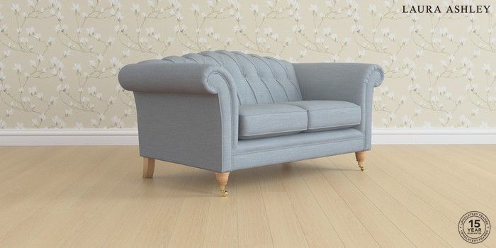 6.12.1 Buy Gloucester Button Back by Laura Ashley 2 Seater Small Sofa Kinsham Seaspray Blue Low Brass Castor - Light Oak from the Next UK online shop Click here to use our accessible website