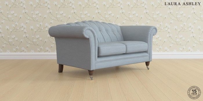 6.12.1 Buy Gloucester Button Back by Laura Ashley 2 Seater Small Sofa Kinsham Seaspray Blue Low Chrome Castor - Chestnut from the Next UK online shop Click here to use our accessible website