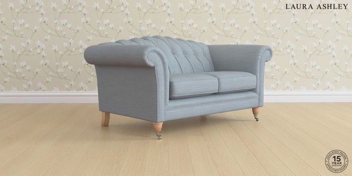 6.12.1 Buy Gloucester Button Back by Laura Ashley 2 Seater Small Sofa Kinsham Seaspray Blue Low Chrome Castor - Light Oak from the Next UK online shop Click here to use our accessible website