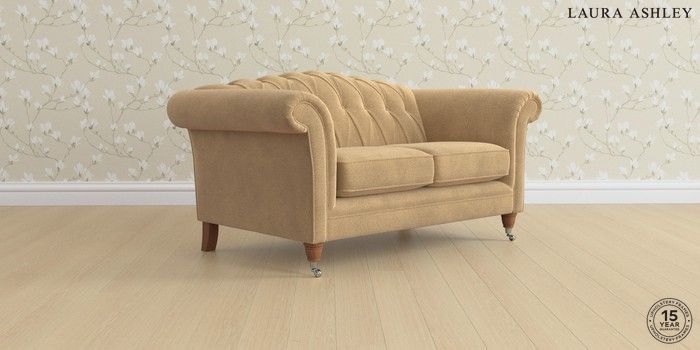 6.12.1 Buy Gloucester Button Back by Laura Ashley 2 Seater Small Sofa Lundar Chenille Caramel Natural Low Chrome Castor - Teak from the Next UK online shop Click here to use our accessible website
