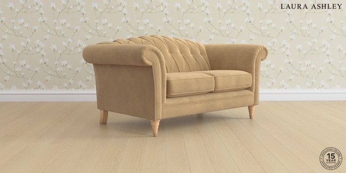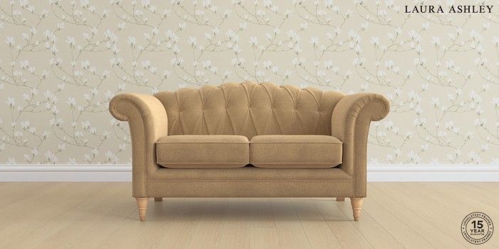 6.12.1 Buy Gloucester Button Back by Laura Ashley 2 Seater Small Sofa Lundar Chenille Caramel Natural Low Turned - Light Oak from the Next UK online shop Click here to use our accessible website