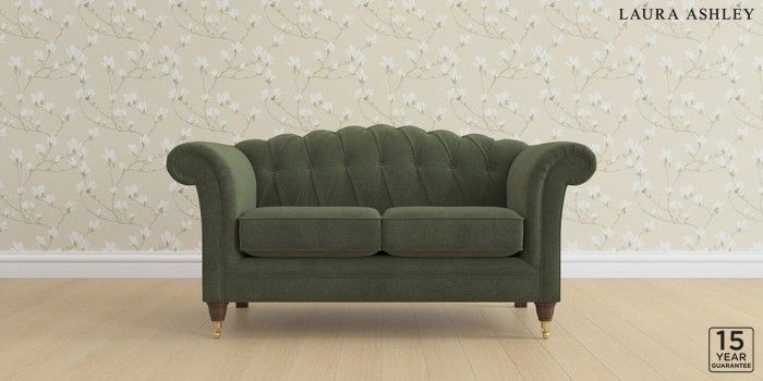 6.12.13 Buy Gloucester Button Back by Laura Ashley 2 Seater Small Sofa Lundar Chenille Ivy Green Low Brass Castor - Chestnut from the Next UK online shop Click here to use our accessible website