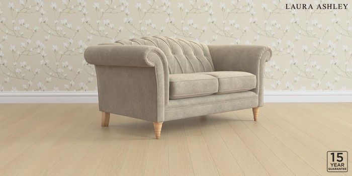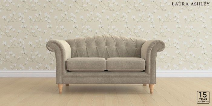 6.12.13 Buy Gloucester Button Back by Laura Ashley 2 Seater Small Sofa Lundar Chenille Truffle Natural Low Turned - Light Oak from the Next UK online shop Click here to use our accessible website