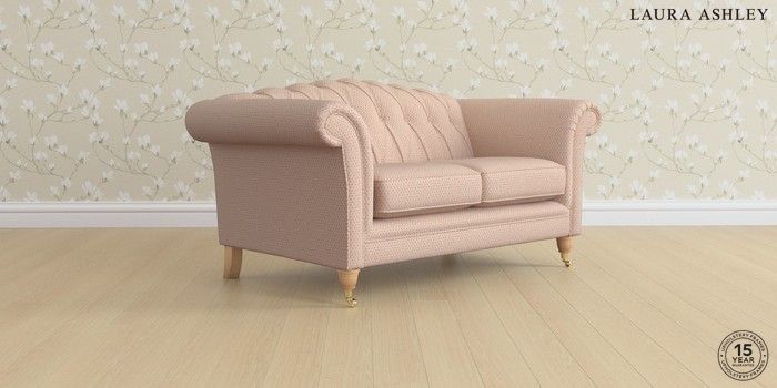 6.12.1 Buy Gloucester Button Back by Laura Ashley 2 Seater Small Sofa Melbreak Geo Chalk Pink Low Brass Castor - Light Oak from the Next UK online shop Click here to use our accessible website