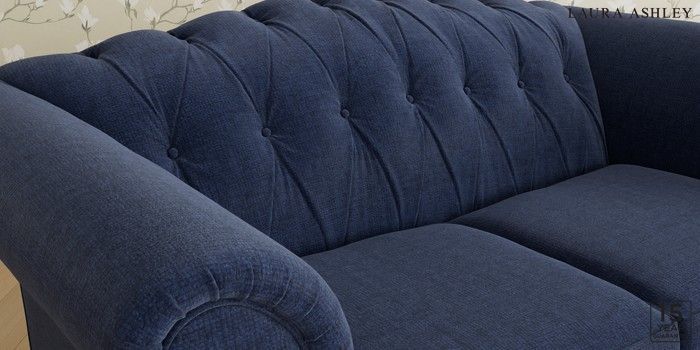 6.12.13 Buy Gloucester Button Back by Laura Ashley 2 Seater Small Sofa Nantmor Midnight Navy Low Brass Castor - Light Oak from the Next UK online shop Click here to use our accessible website