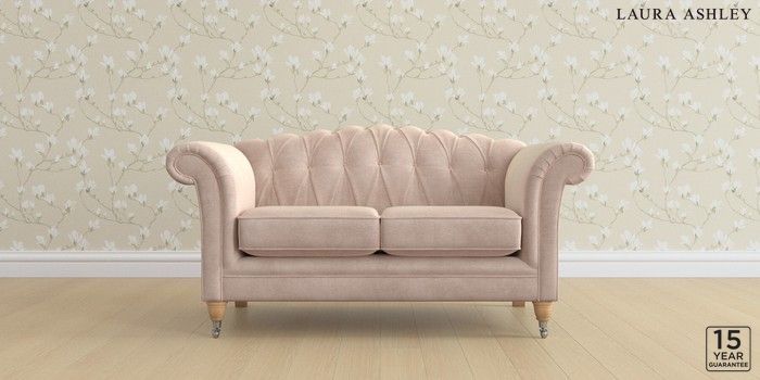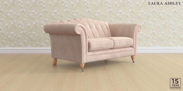 6.12.13 Buy Gloucester Button Back by Laura Ashley 2 Seater Small Sofa Orla Chalk Pink Low Chrome Castor - Light Oak from the Next UK online shop Click here to use our accessible website