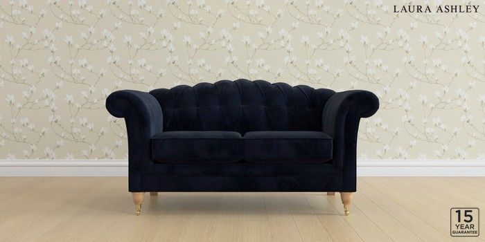 6.12.13 Buy Gloucester Button Back by Laura Ashley 2 Seater Small Sofa Orla Midnight Navy Low Brass Castor - Light Oak from the Next UK online shop Click here to use our accessible website