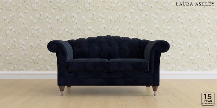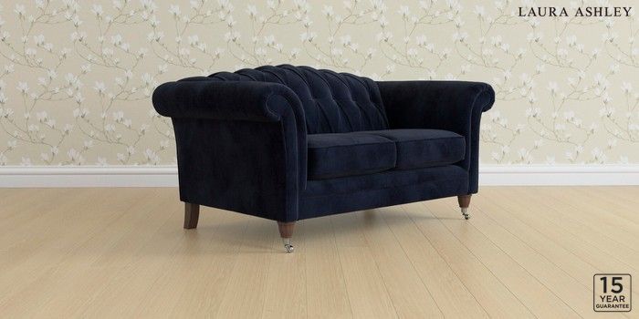 6.12.13 Buy Gloucester Button Back by Laura Ashley 2 Seater Small Sofa Orla Midnight Navy Low Chrome Castor - Chestnut from the Next UK online shop Click here to use our accessible website