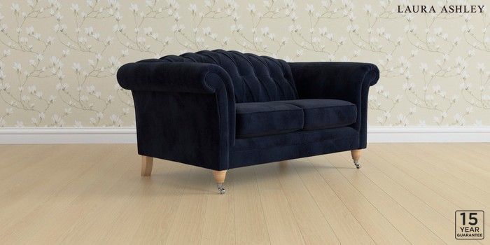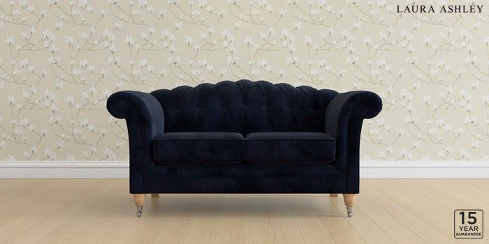6.12.13 Buy Gloucester Button Back by Laura Ashley 2 Seater Small Sofa Orla Midnight Navy Low Chrome Castor - Light Oak from the Next UK online shop Click here to use our accessible website