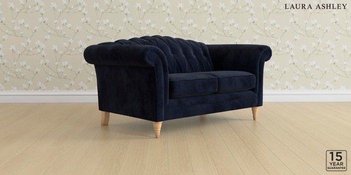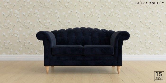 6.12.13 Buy Gloucester Button Back by Laura Ashley 2 Seater Small Sofa Orla Midnight Navy Low Turned - Light Oak from the Next UK online shop Click here to use our accessible website