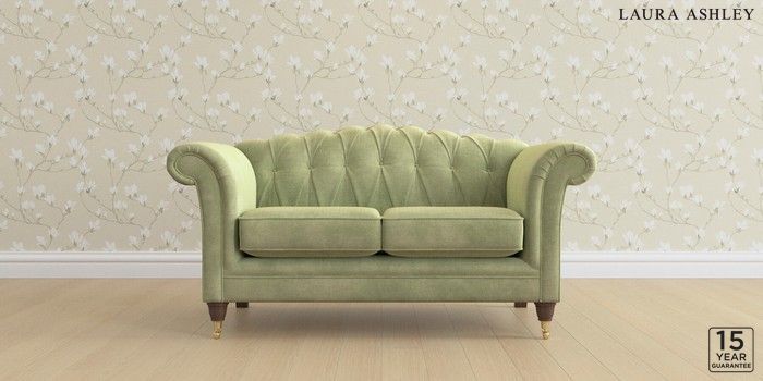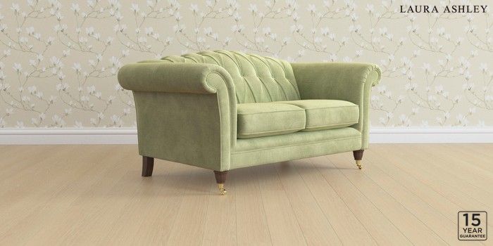 6.12.13 Buy Gloucester Button Back by Laura Ashley 2 Seater Small Sofa Orla Pale Hedgerow Green Low Brass Castor - Chestnut from the Next UK online shop Click here to use our accessible website