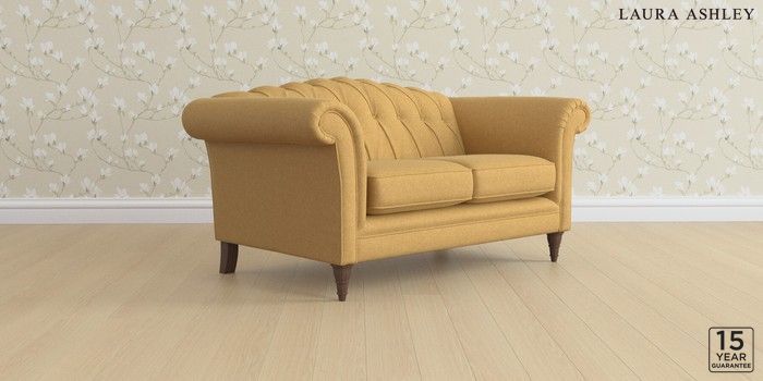 6.12.1 Buy Gloucester Button Back by Laura Ashley 2 Seater Small Sofa Peyton Ochre Yellow Low Turned - Chestnut from the Next UK online shop Click here to use our accessible website