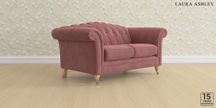 6.12.13 Buy Gloucester Button Back by Laura Ashley 2 Seater Small Sofa Peyton Plum Purple Low Chrome Castor - Light Oak from the Next UK online shop Click here to use our accessible website