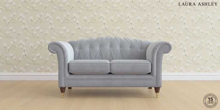 6.12.1 Buy Gloucester Button Back by Laura Ashley 2 Seater Small Sofa Peyton Powder Blue Low Brass Castor - Chestnut from the Next UK online shop Click here to use our accessible website