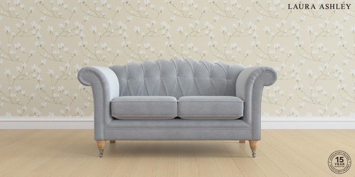 6.12.1 Buy Gloucester Button Back by Laura Ashley 2 Seater Small Sofa Peyton Powder Blue Low Chrome Castor - Light Oak from the Next UK online shop Click here to use our accessible website