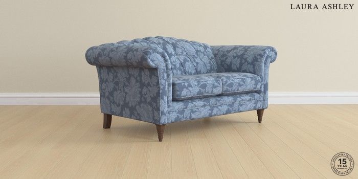 7.2.6 Buy Gloucester Button Back by Laura Ashley 2 Seater Small Sofa Tamara Dusky Seaspray Blue Low Turned - Chestnut from the Next UK online shop Click here to use our accessible website