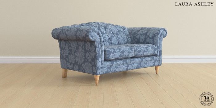 7.2.6 Buy Gloucester Button Back by Laura Ashley 2 Seater Small Sofa Tamara Dusky Seaspray Blue Low Turned - Light Oak from the Next UK online shop Click here to use our accessible website