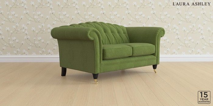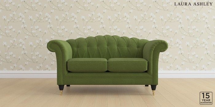 6.12.13 Buy Gloucester Button Back by Laura Ashley 2 Seater Small Sofa Tichwell Olive Green Low Brass Castor - Black from the Next UK online shop Click here to use our accessible website