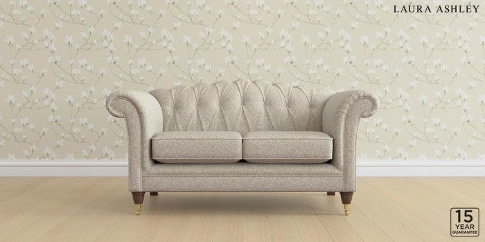 6.12.13 Buy Gloucester Button Back by Laura Ashley 2 Seater Small Sofa Tichwell Stone Natural Low Brass Castor - Chestnut from the Next UK online shop Click here to use our accessible website