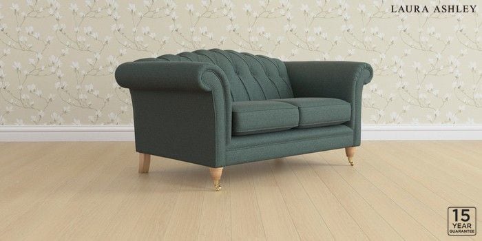 6.12.13 Buy Gloucester Button Back by Laura Ashley 2 Seater Small Sofa Wooton Forest Green Low Brass Castor - Light Oak from the Next UK online shop Click here to use our accessible website