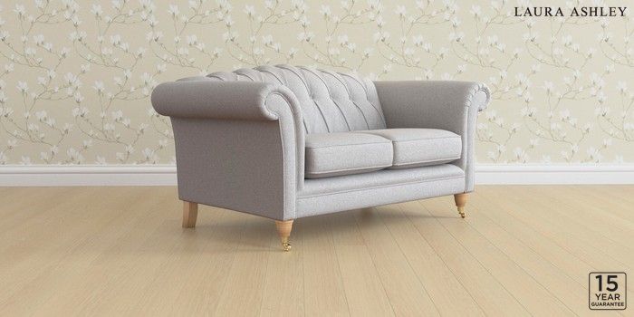 6.12.1 Buy Gloucester Button Back by Laura Ashley 2 Seater Small Sofa Wooton Pale Steel Grey Low Brass Castor - Light Oak from the Next UK online shop Click here to use our accessible website