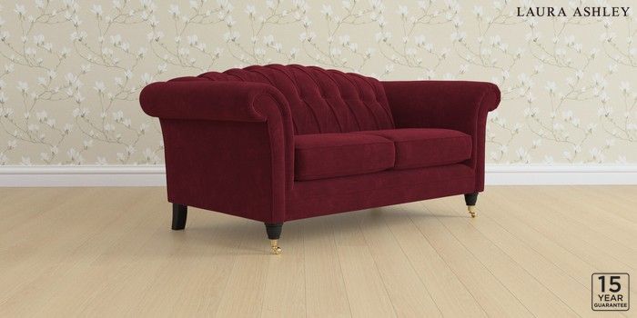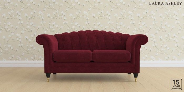 6.12.1 Buy Gloucester Button Back by Laura Ashley 2 Seater Sofa Alwyn Velvet Burgundy Red Low Brass Castor - Black from the Next UK online shop Click here to use our accessible website