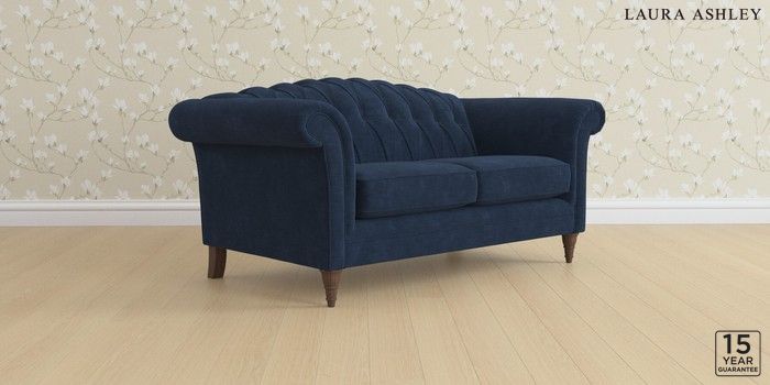 7.0.3 Buy Gloucester Button Back by Laura Ashley 2 Seater Sofa Alwyn Velvet Midnight Navy Low Turned - Chestnut from the Next UK online shop Click here to use our accessible website